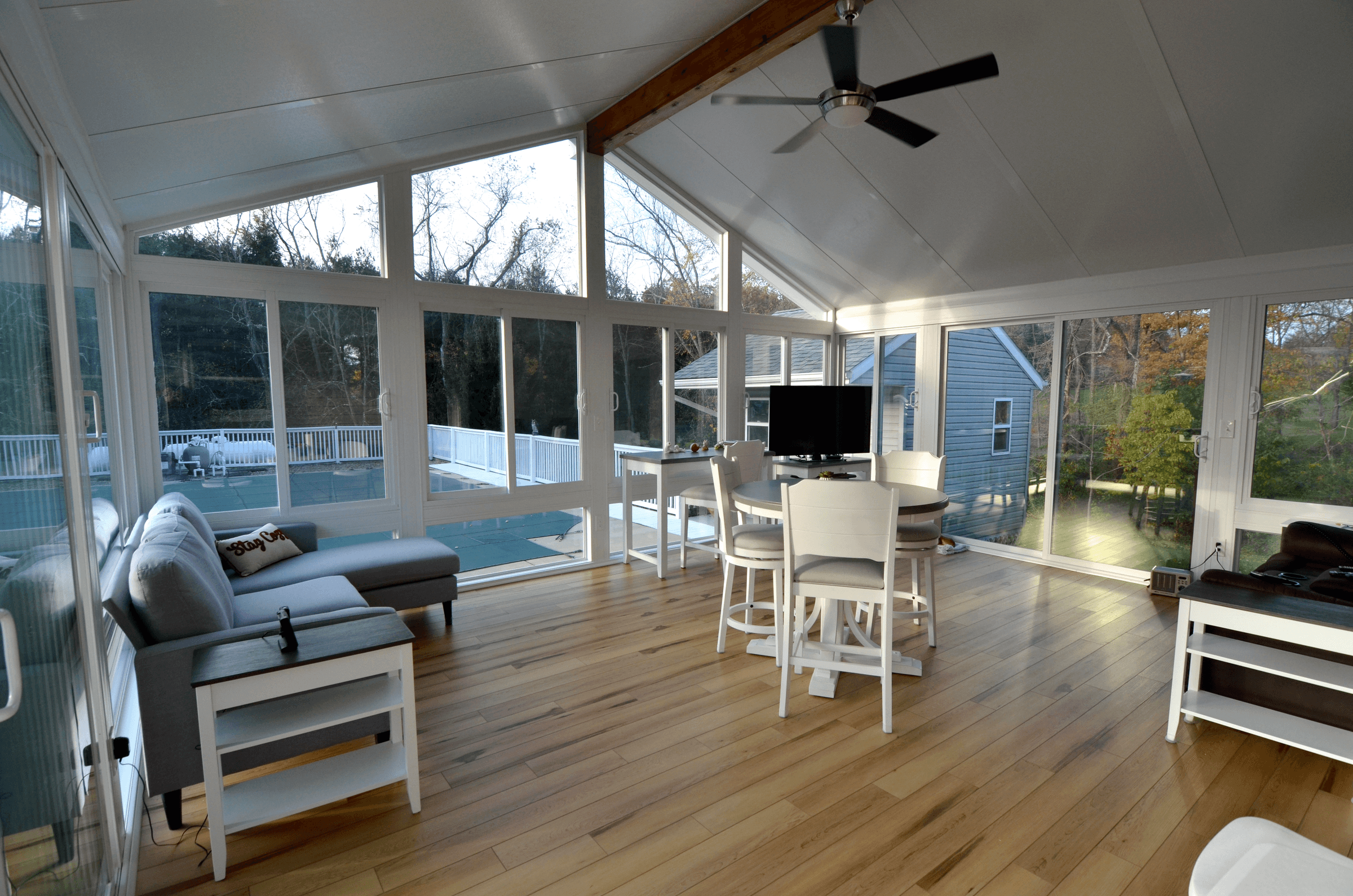 Our all-seasons sunroom design ensures that the space is comfortable and functional throughout the year. By using materials and designs that integrate well with the home’s existing style and insulation standards, this sunroom addition provides a perfect blend of beauty, functionality, and energy efficiency.
